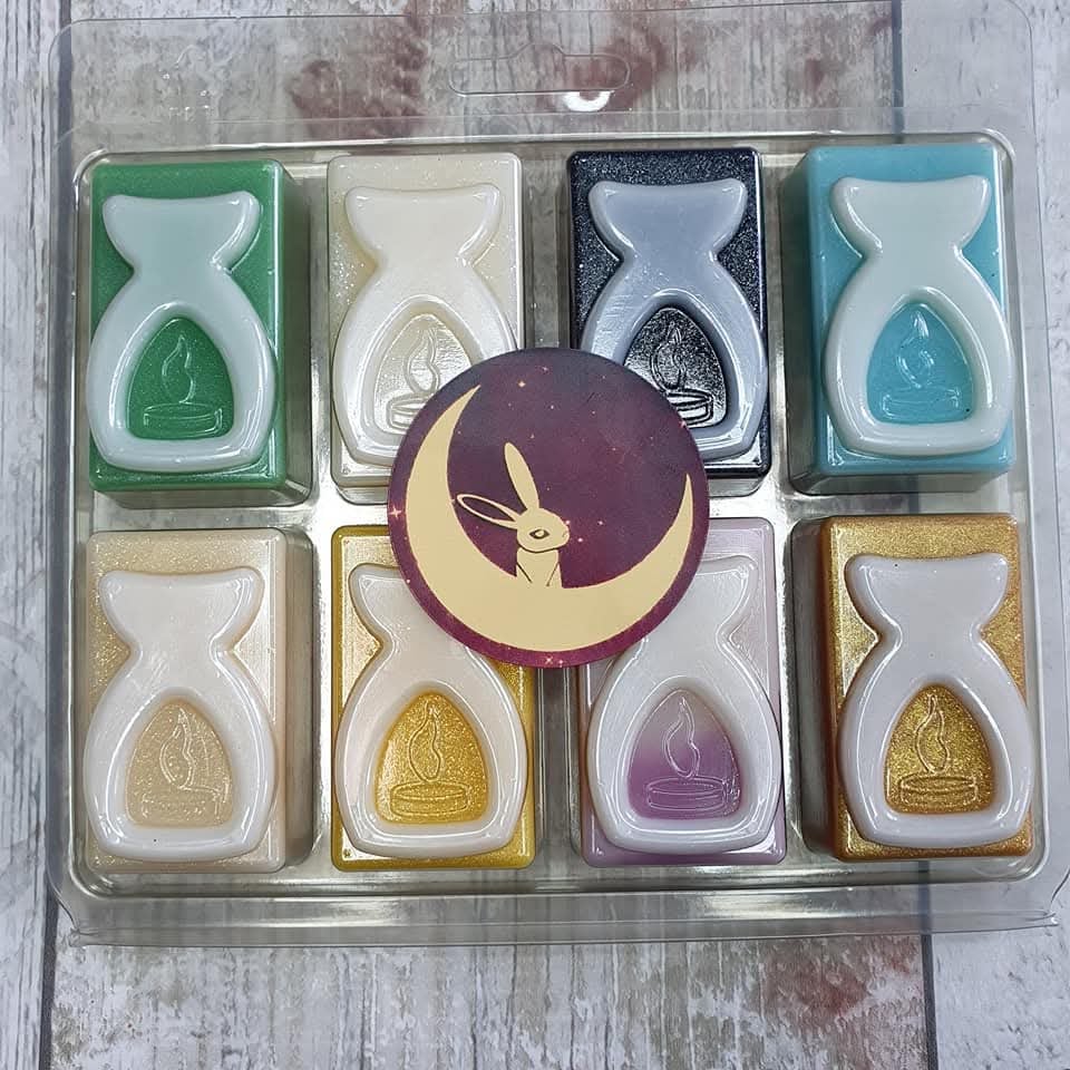 8 cell wax burner clamshells. Great for sample boxes, collection boxes. Can use 8 different scents as they are individual cells. Plenty of room underneath for individual clps.